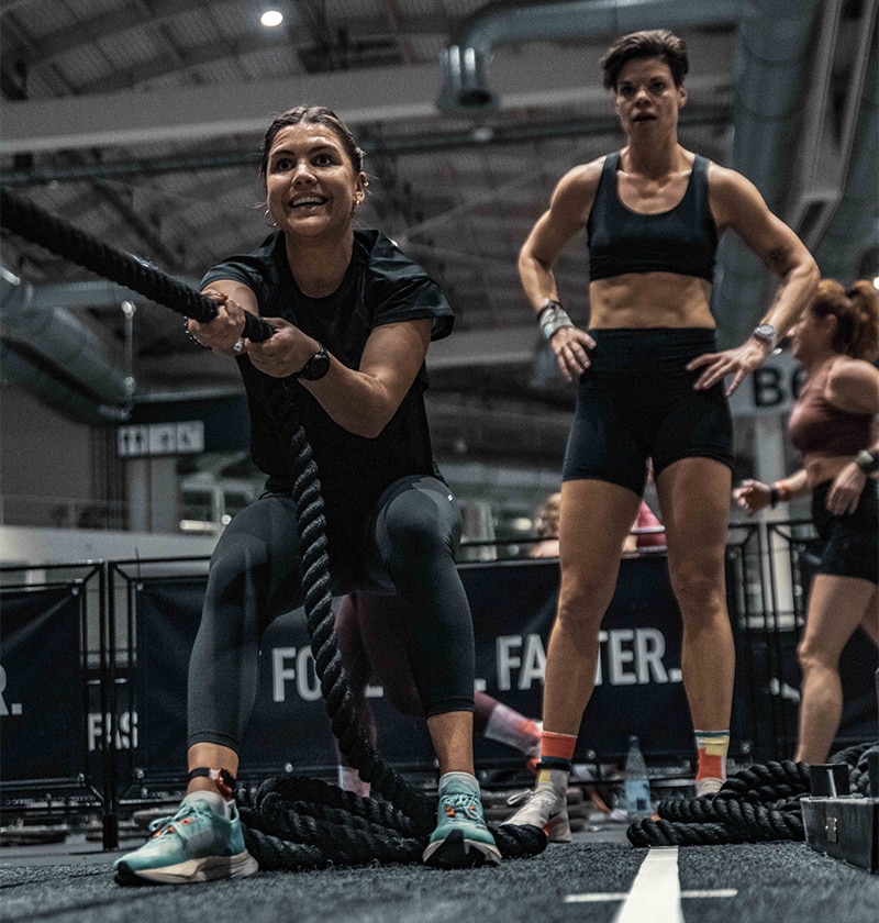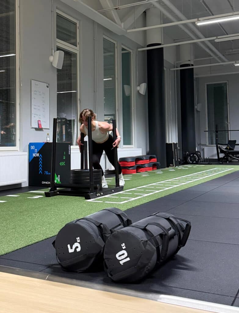 Liikkeet ja kuormat skaalataan osallistujan tason mukaan, joten HYROX-treeni sopii sekä aloitteleville että kokeneemmille liikkujille.